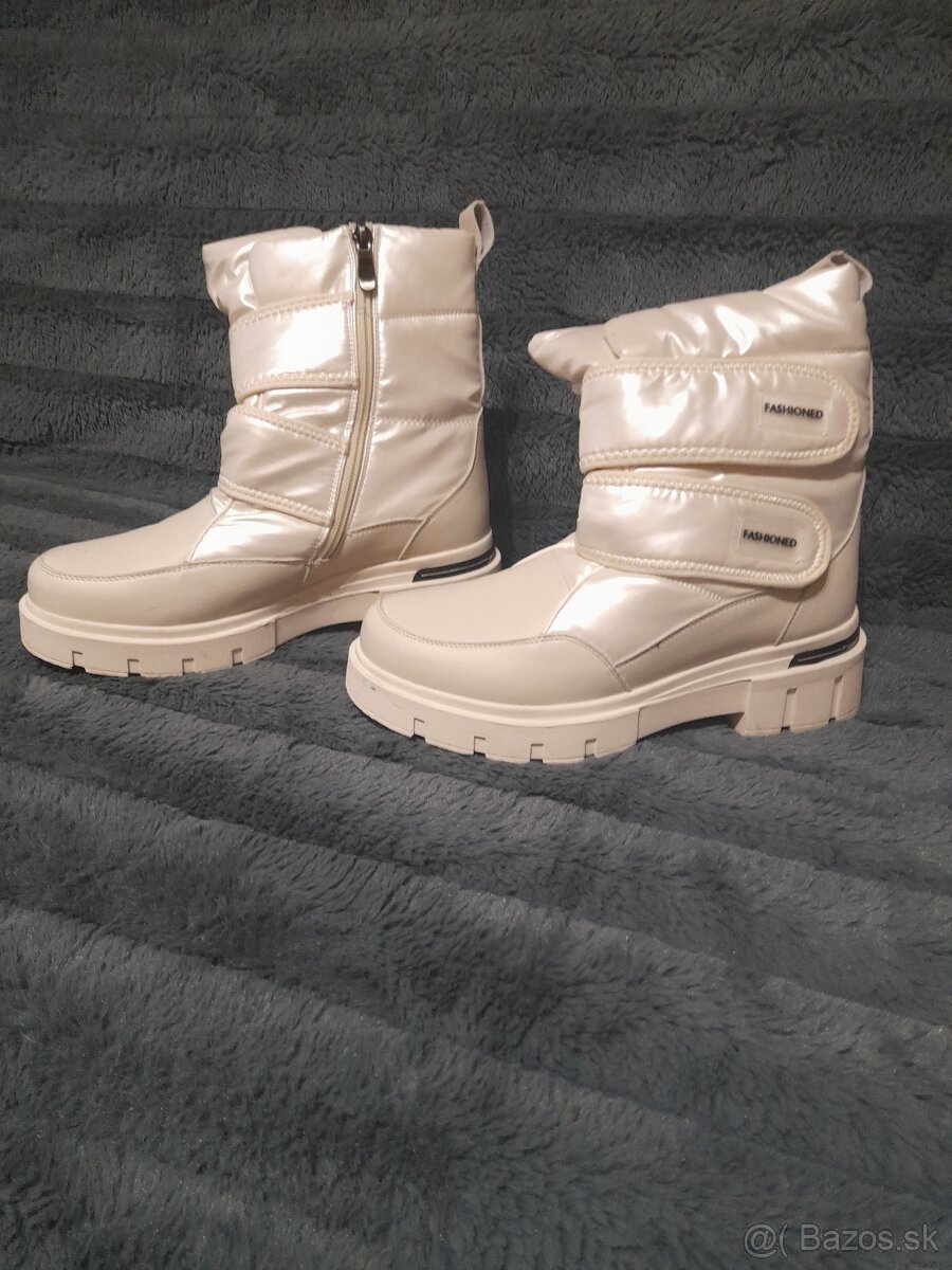Predám nenosené čižmy, béžovej farby, kožený zvršok, vo vnútri teplá kožušinka, č. 39. Pošlem iba na dobierku