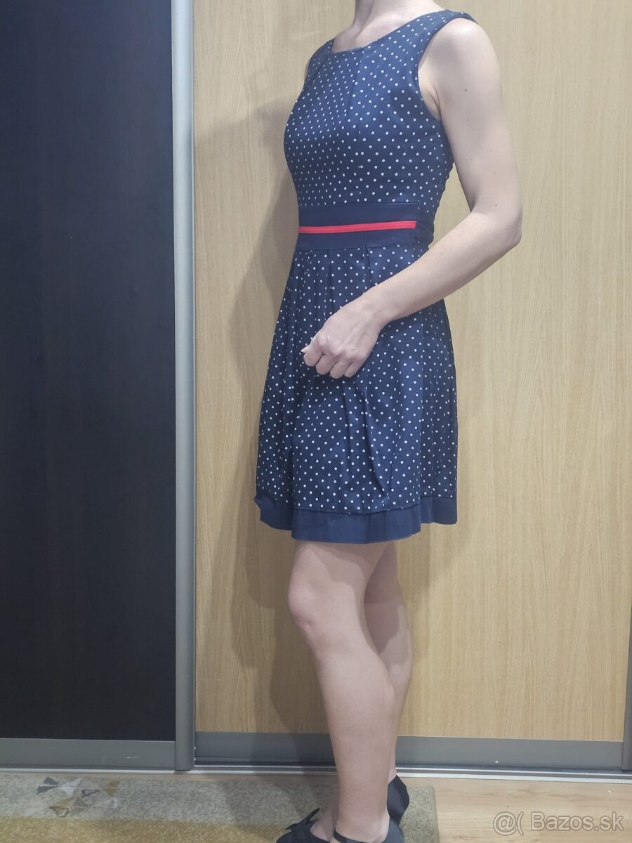 predám tmavomodré šaty s bielymi bodkami