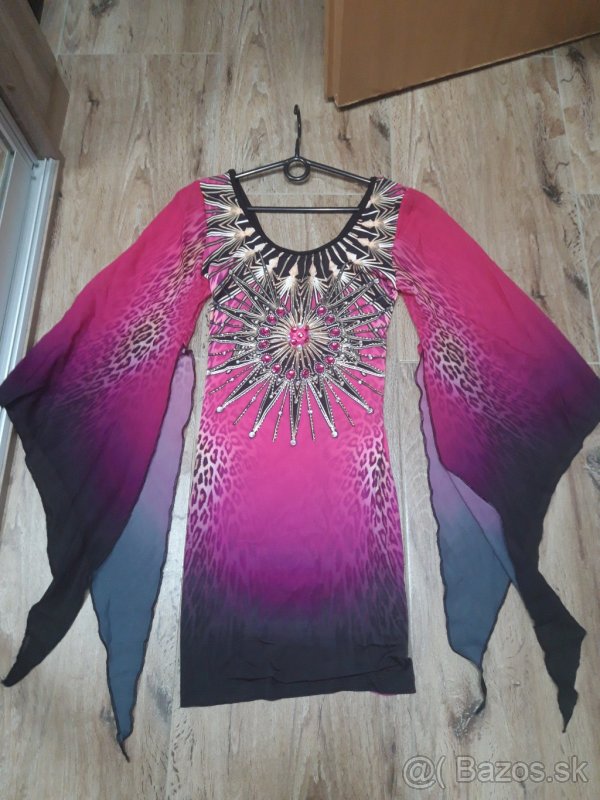 Ponukam ruzove elasticke saty, vel. S., raz oblecene, pekne sedia na postave.