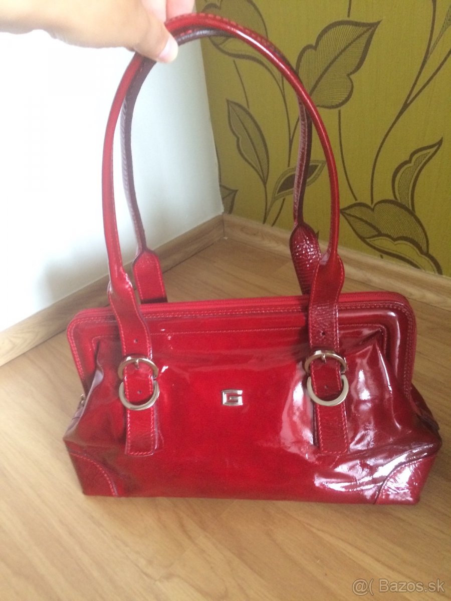 Predam elegantnu kozenu kabelku lesklej cervenej lakovanej farby. Rozmer 34,5 x 20 cm. Je vo vybornom stave.
