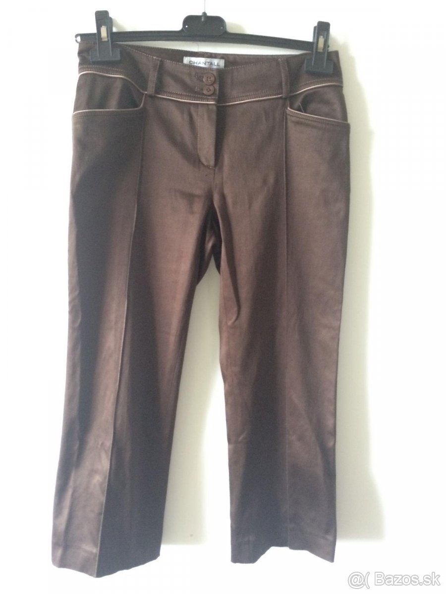 Elegantné 3/4 nohavice vo výbornom stave, párkrát oblečené. Značka Chantall. Lesklý elegantný materiál. Predávam k tomu aj blúzku so šálou/šatkou, ktorú som kúpila ako kombináciu. Pozrite další inzerát na blúzku. Spolu to vypadá veľmi pekne :-)