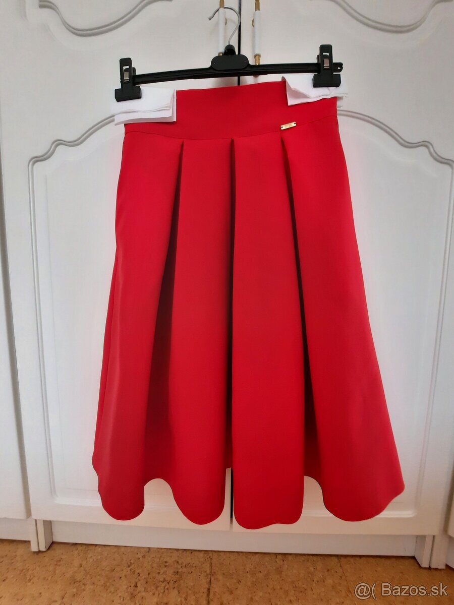 Predám spoločenskú krátku sukňu červenej farby zakúpenú v obchode Mia Dresses. Jednoduchá a veľmi praktická sukňa, ktorú ľahko skombinujete a využijete na rôzne príležitosti.
