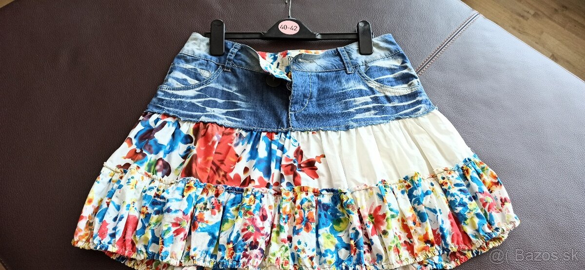 Predám značkovú sukňu Desigual, max.4-5x oblečená, originálne prevedenie. Kombinácia farieb hodiaca sa k rôznym topom, farbám. Príjemný, ľahký materiál, 100% bavlna ako na fotke.Rozmery veľkosť L, 40, pás, boky presný rozmer na fotke. V Bratislave možnosť odskúšania, obhliadky tovaru, mimo BA posielam na dobierku. V prípade seriózneho záujmu prosím volať alebo email. Ďakujem