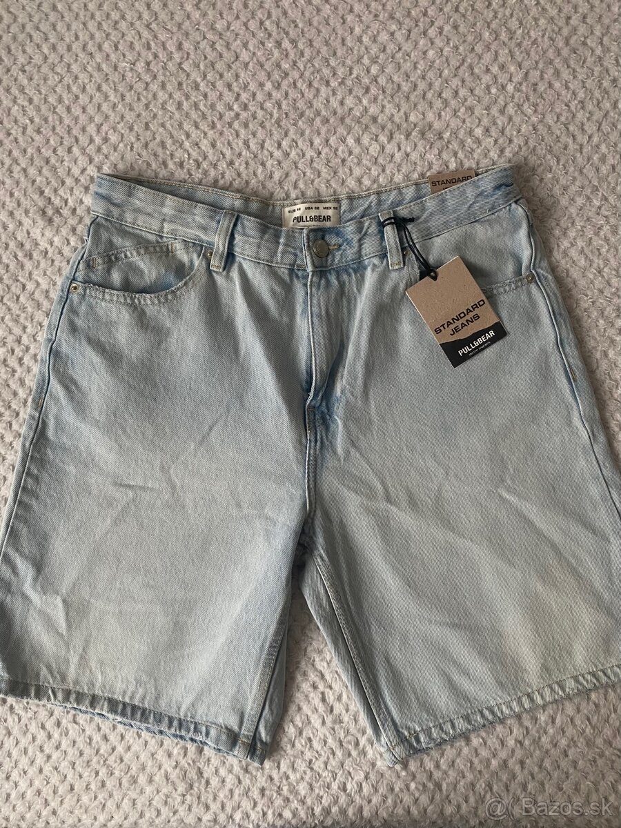 Pánske rifľové kraťasy z Pull&Bear veľkosť 42. Sú úplne nové, nenosené, ešte s visačkou. Pôvodná cena 25€