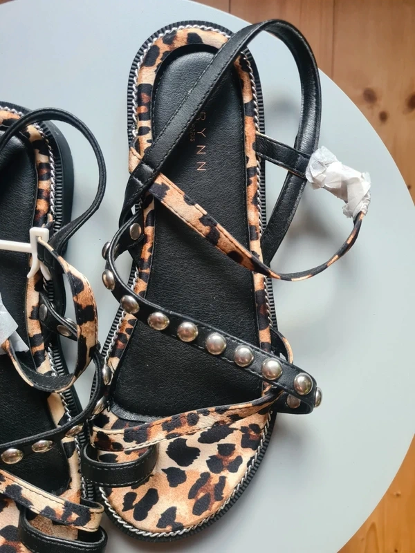 Čierne nízke sandále so zvieracím vzorom. S klasickým zapínaním vo veľkosti 38. Nenosené, len kúpené - ešte s neodbaleným zapínaním viď. na fotkách.