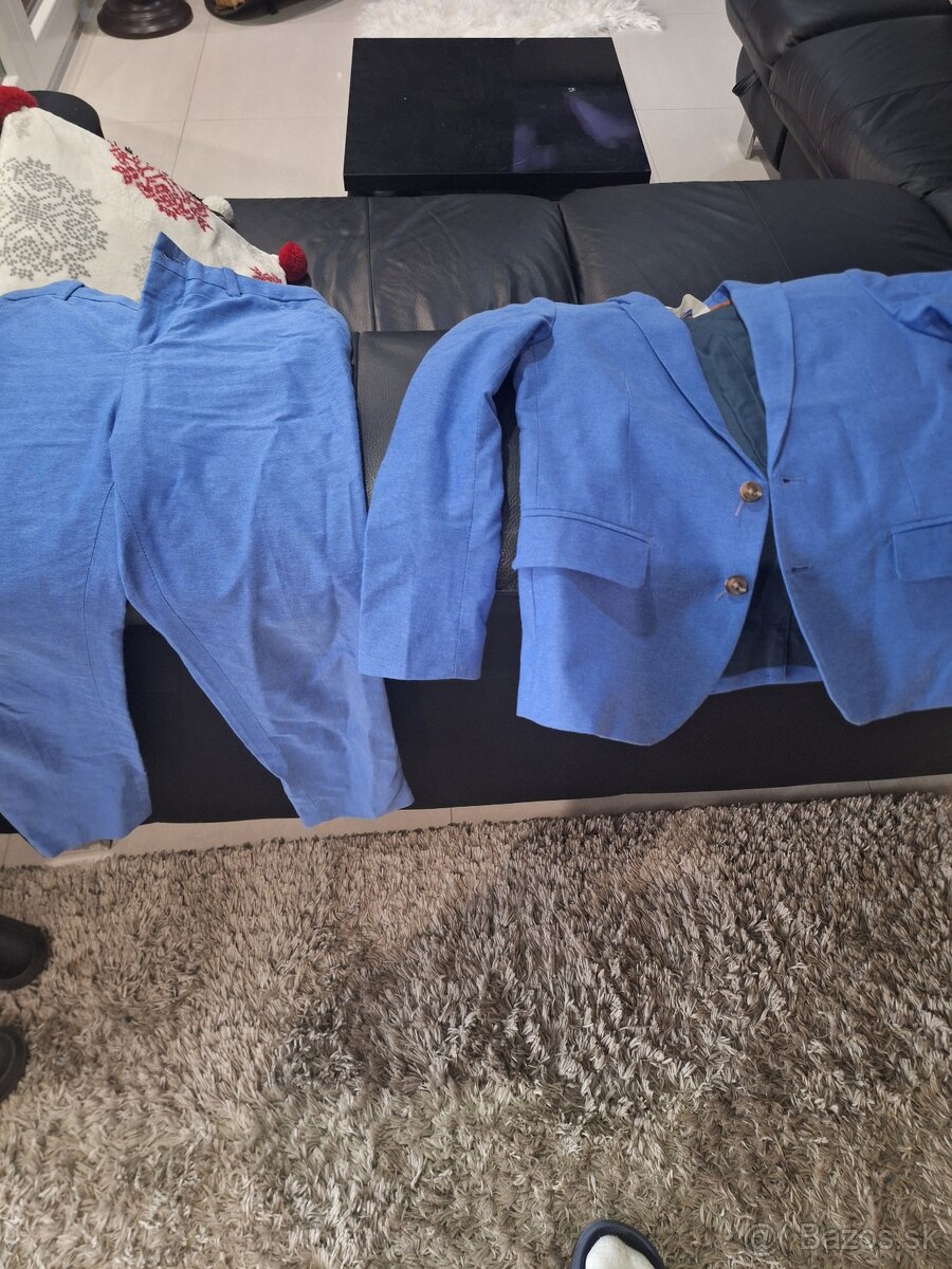 Predám detský oblek modrej farby veľkosť 134. 2 x použitý. Ako nový.