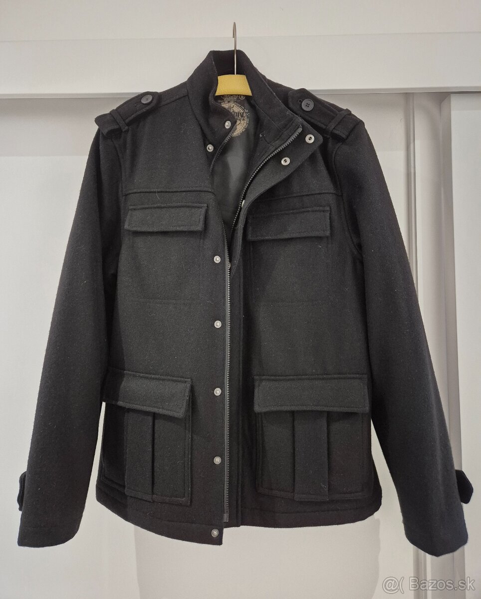 Predám minimálne nosený pánsky kabát značky Cherokee, čierny, veľkosť S, materiál vlna + polyester, zapínanie na zips aj cvoky, 4 veľké vrecká.