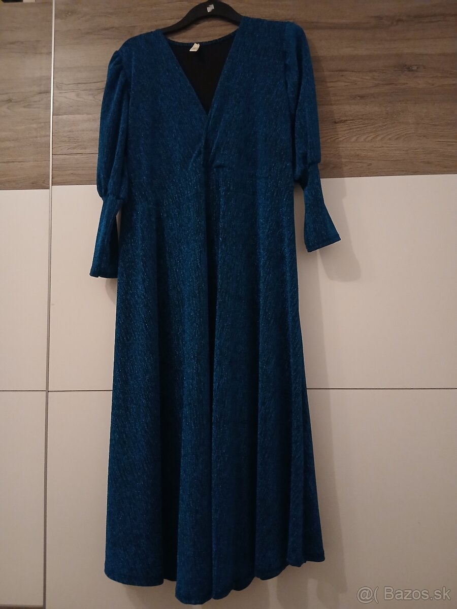 Predám modré spoločenské šaty,nove,nenosené. Velkost.46,48.material je elastický.