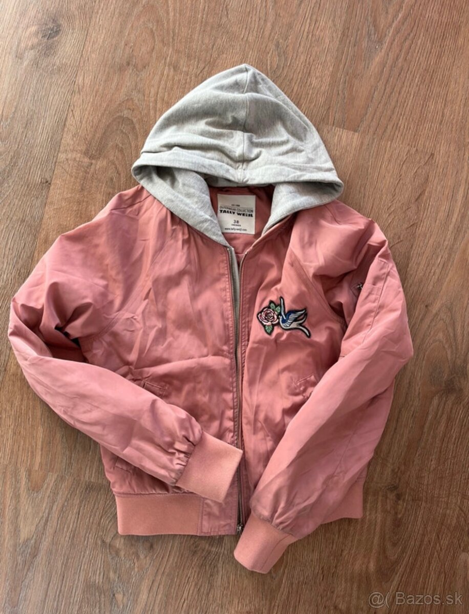 Prechodná bombera veľkosti 38 - je kratšia, sedí na veľkosť XS/S. Nosená, v nepoškodenom dobrom stave. Bunda je starorúžovej farby. Pôvodná cena 45€ Tally Weijl.