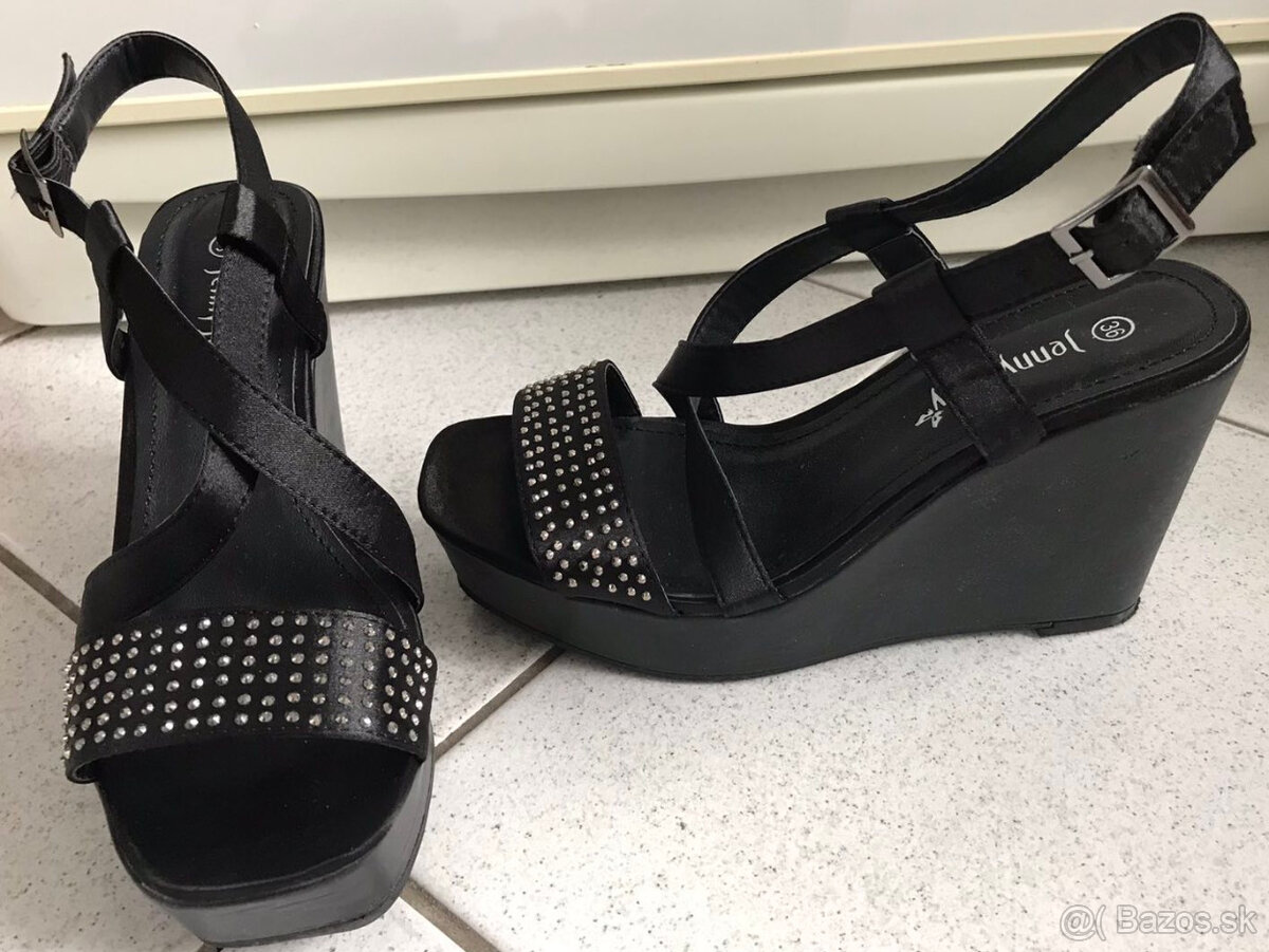 Predám čierne vysoké sandále na platforme so zirkónmi - boli raz obuté, sú vo výbornom stave.