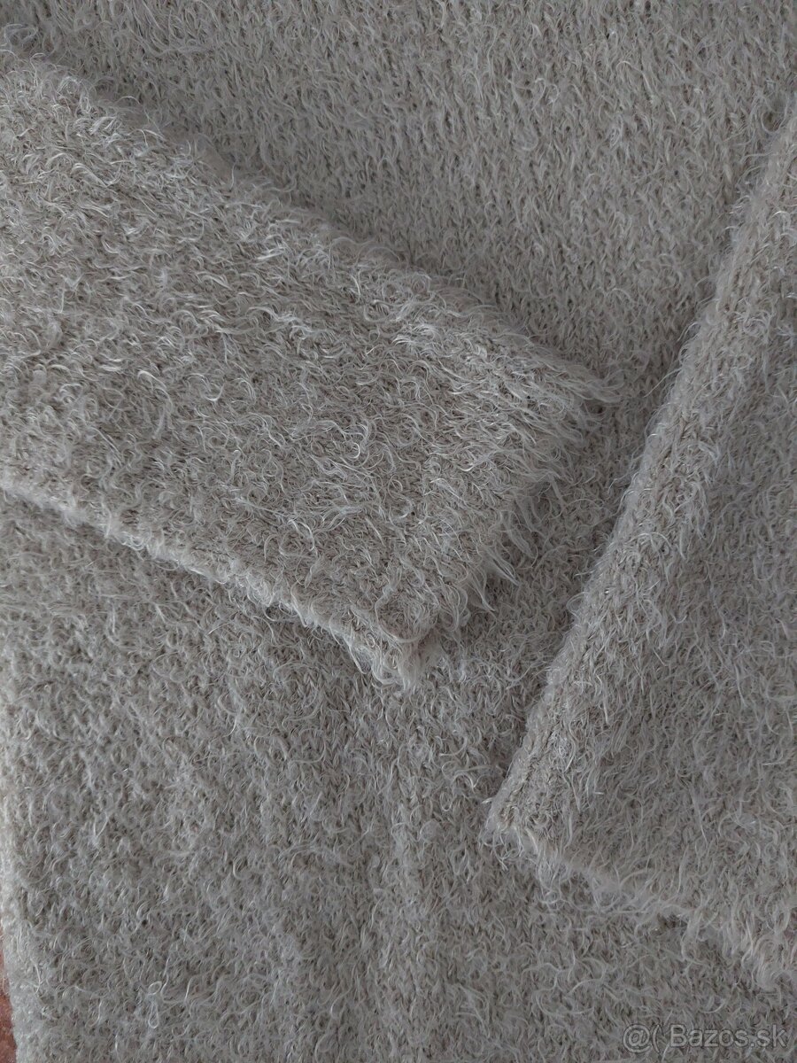 Ľahučký "chlpatý" pulóver béžovej farby, veľkosť 42/44, šírka 48cm, dĺžka 68cm, párkrát oblečený. Pôvodná cena 35€
