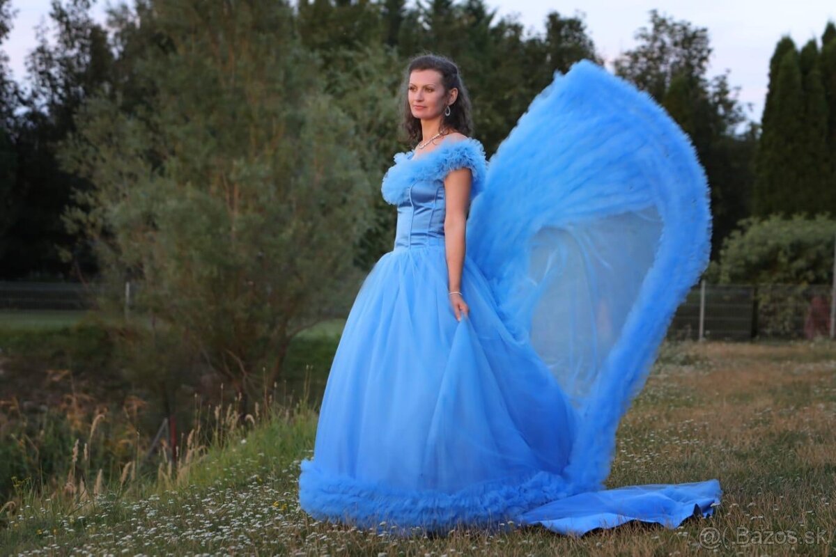 Ponúkam na predaj originálne svadobné,respektíve spoločenské šaty typu Popoluška,ktoré sa prispôsobia postave od veľkosti 36-40,pripadne sa dajú upraviť aj na inú veľkosť.Šaty boli použité iba raz(ušité v USA).Šaty sú vhodne pre výšku od 165-180cm.Pekne sedia k vyšším podpätkom a zvýrazňujú štíhly pas.Vyrobené ručne z jemných materiálov.Pod šaty je možné použiť kruh.