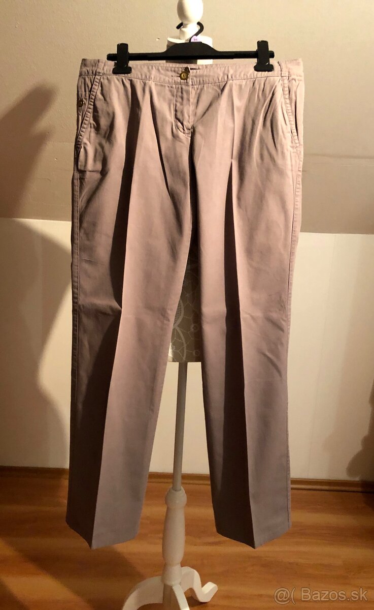 Bledohnedé pánske nohavice značky Mango. Sú to tzv. oblekové nohavice, ktoré sú zažehlené na puky. Príjemný materiál, takže sú vhodné aj na každodenné nosenie do práce. Veľkosť 40.