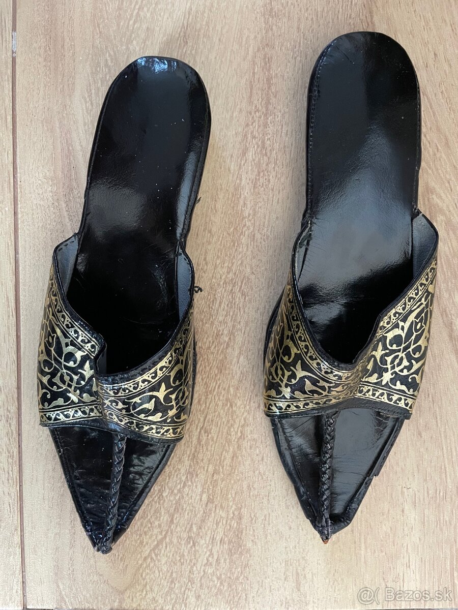 Čierne indické kožené slapky č. 38 takmer nenosené.