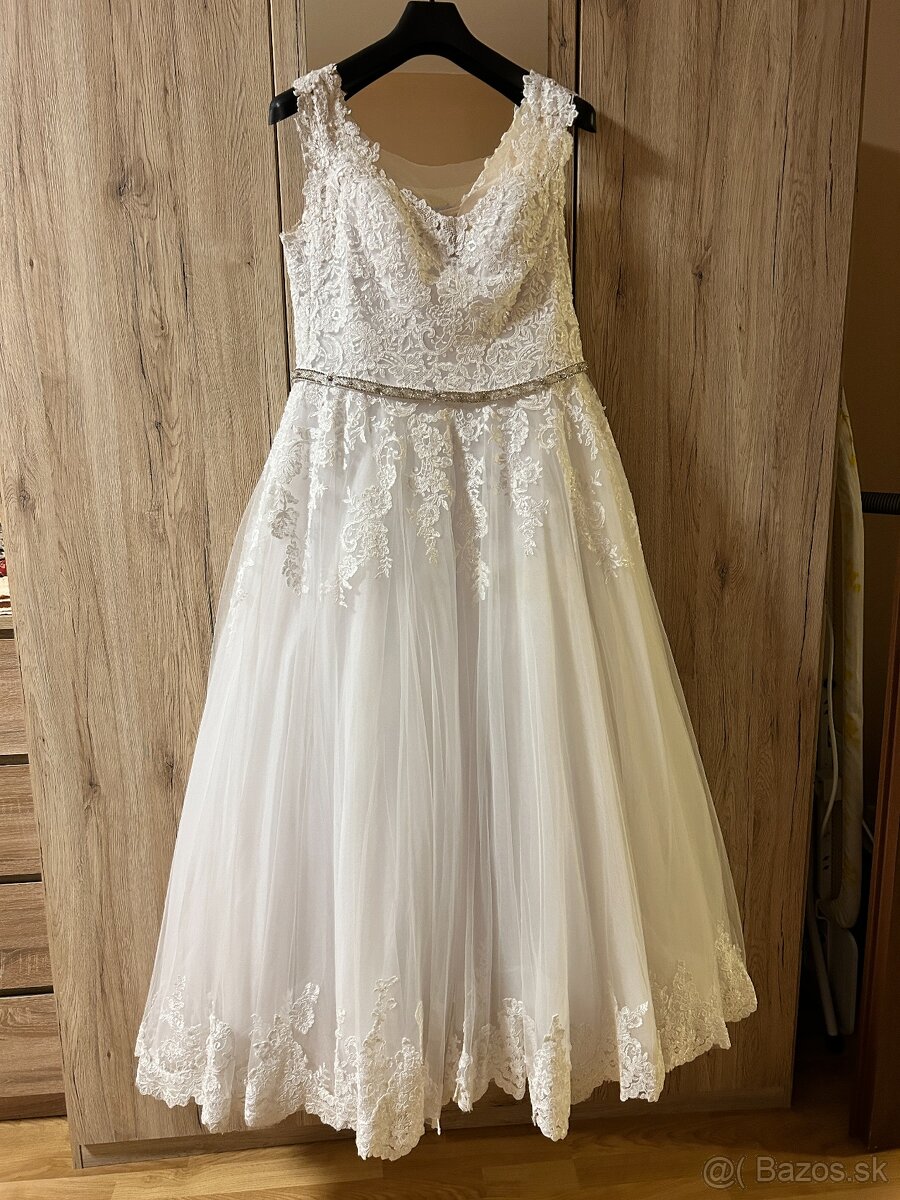Ponúkam na predaj krásne svadobné šaty s vlečkou (bez závoja a bez kruhu). Veľkosť sa prispôsobí vďaka šnúrovačke. Moja výška je 160 cm + som mala 5cm opätky. K šatám je aj bolerko. Najlepšie je osobné vyskúšať v obci Rozhanovce. Cena 450€. Pri rýchlom jednaní dohoda na cene možná.