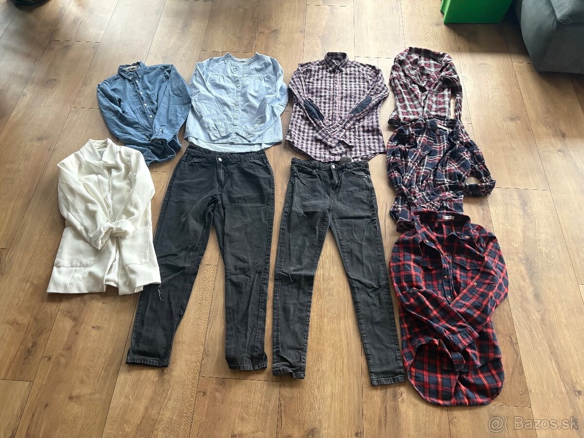2x čierne rifle (slim a moom) jedna majú biely fľak na zadu