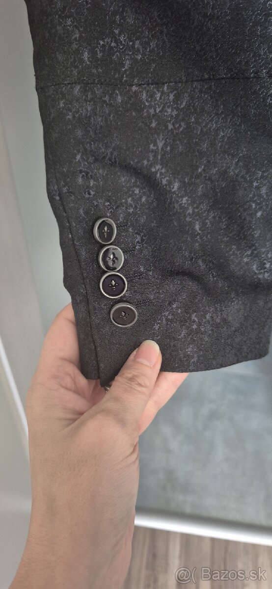 Svadobný oblek vel. 54 - [9.2. 2026]Predám svadobný oblek slim fit nepoužity dovezený zo zahraničia žiaľ na ramenách je malý latka ma krásny vzor je to komplet nohavice sako vesta motýlik