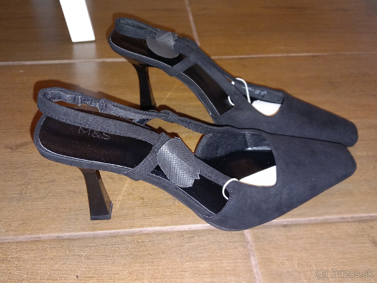 Čierne semišové lodičky , veľkosť uvádzaná 7 a pol. - ako je na foto, moja veľkosť, nesedí mi strih. Výška opätku 7cm. Značka M & S. Úplne nové, nenosené. Pôvodná cena 52€. POZOR! DÔLEŽITÉ UPOZORNENIE!! Vzhľadom na nové zákonné ustanovenia sa predaj uskutočňuje bez akejkoľvek záruky, záruky alebo vrátenia. Keďže ide o súkromný predaj, nemôžem prevziať žiadnu záruku podľa nového práva EÚ. Uchádzač s tým súhlasí a berie to na vedomie svojim nákupom! Podľa nového zákona EÚ sa tento dodatok musí objaviť pod každým internetovým predajom, inak predávajúci ručí aj ako súkromná osoba po celý rok za predaný tovar.