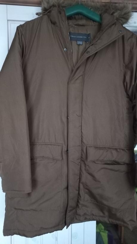 Pekná pánska bunda hnedej farby s kožušinou na kapucni. Kapucňa má zaťahovaciu šnúrku. Veľké vrecká. Vrecko náprsné aj vo vnútri. Rukáv ukončený aj patentom, ktorý nie je vidieť. Na štítku veľkosť M. ZN: FRENCH CONNECTION. otázky kľudne zodpoviem. Je velmi ĺahučká , teplá a velmi pohodlná. Otázky zodpoviem, premeriam čo treba. Kľudne spravím aj viac fotiek. Aj osobný odber v Košiciach možný, inak posielam pre cezpoĺných. Mám viac vecí, kľudne nahliadnite do môjho bazárika