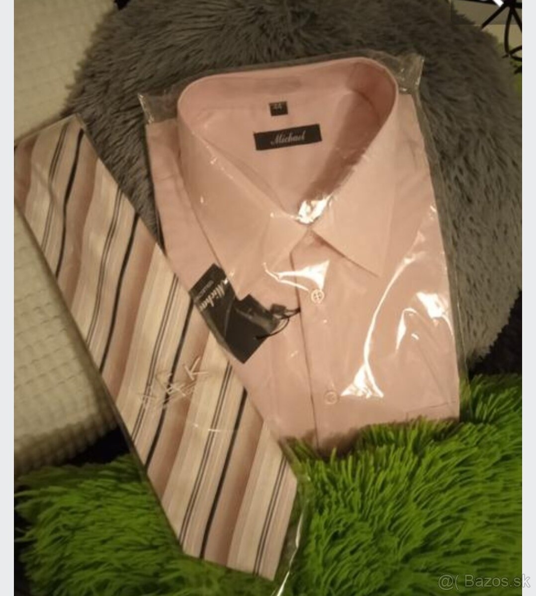 Nová, ešte zabalená krásna ružovo pastelová košeľa doplnená o zladenú kravatu grátis.