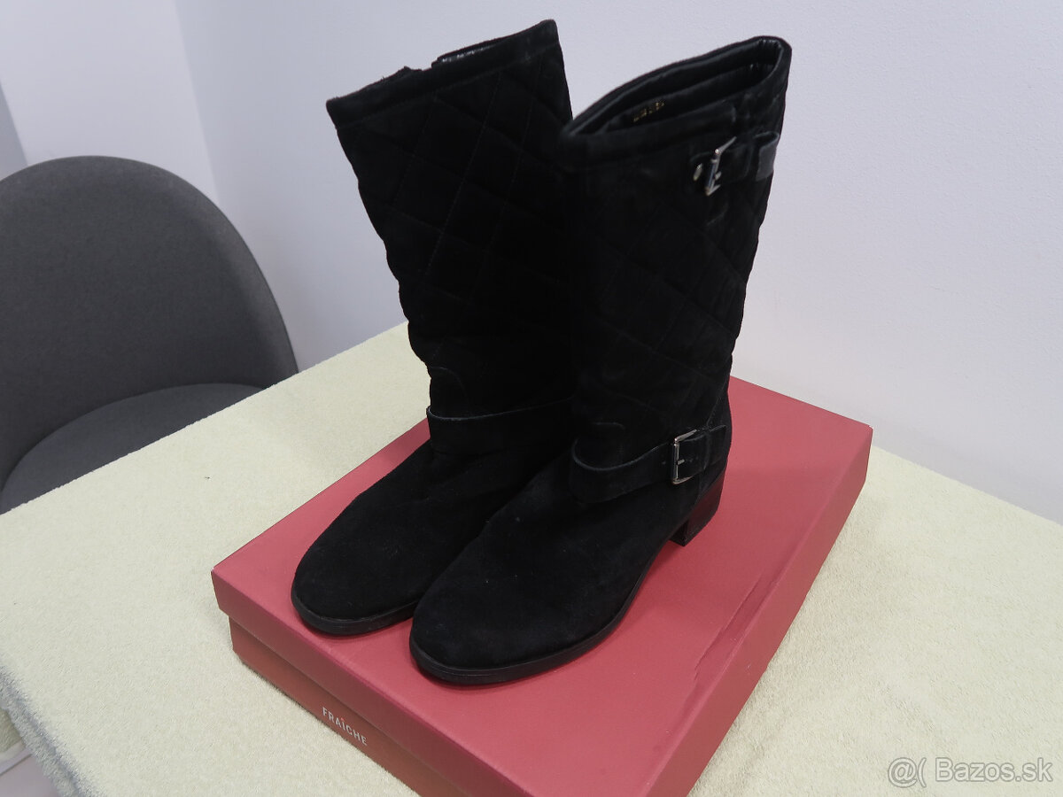 Kotníkové čižmy nové - [7.2. 2026]krásne kožené, semišové, moderné, pohodlné, vnútorná dĺžka 36 cm, výška podpätku 9cm, nenosené