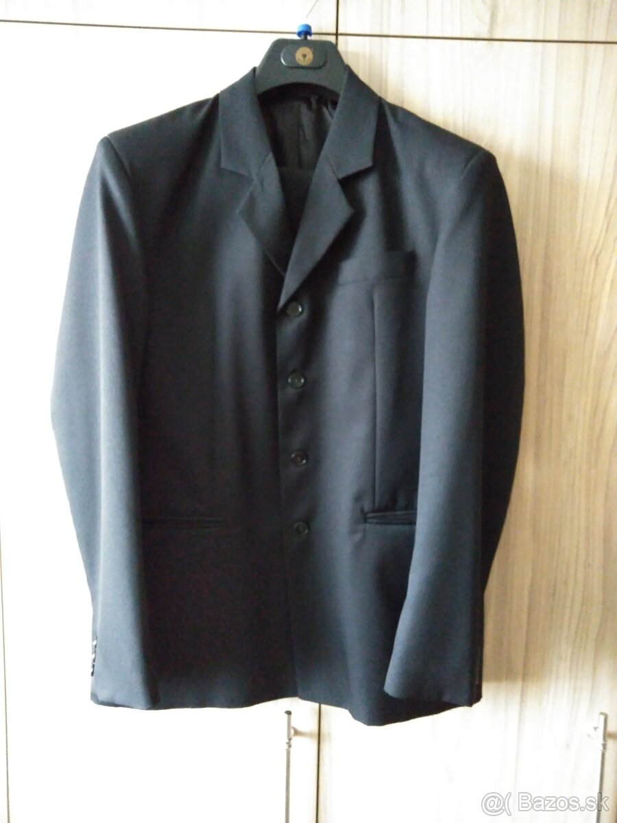 Predám čierne sako dlhšieho strihu z kvalitného materiálu spolu s nohavicami.Sako plecia48, dĺžka 81,rukávy 65cm.Nohavice pás 88, dĺžka 101cm. Len osobný odber