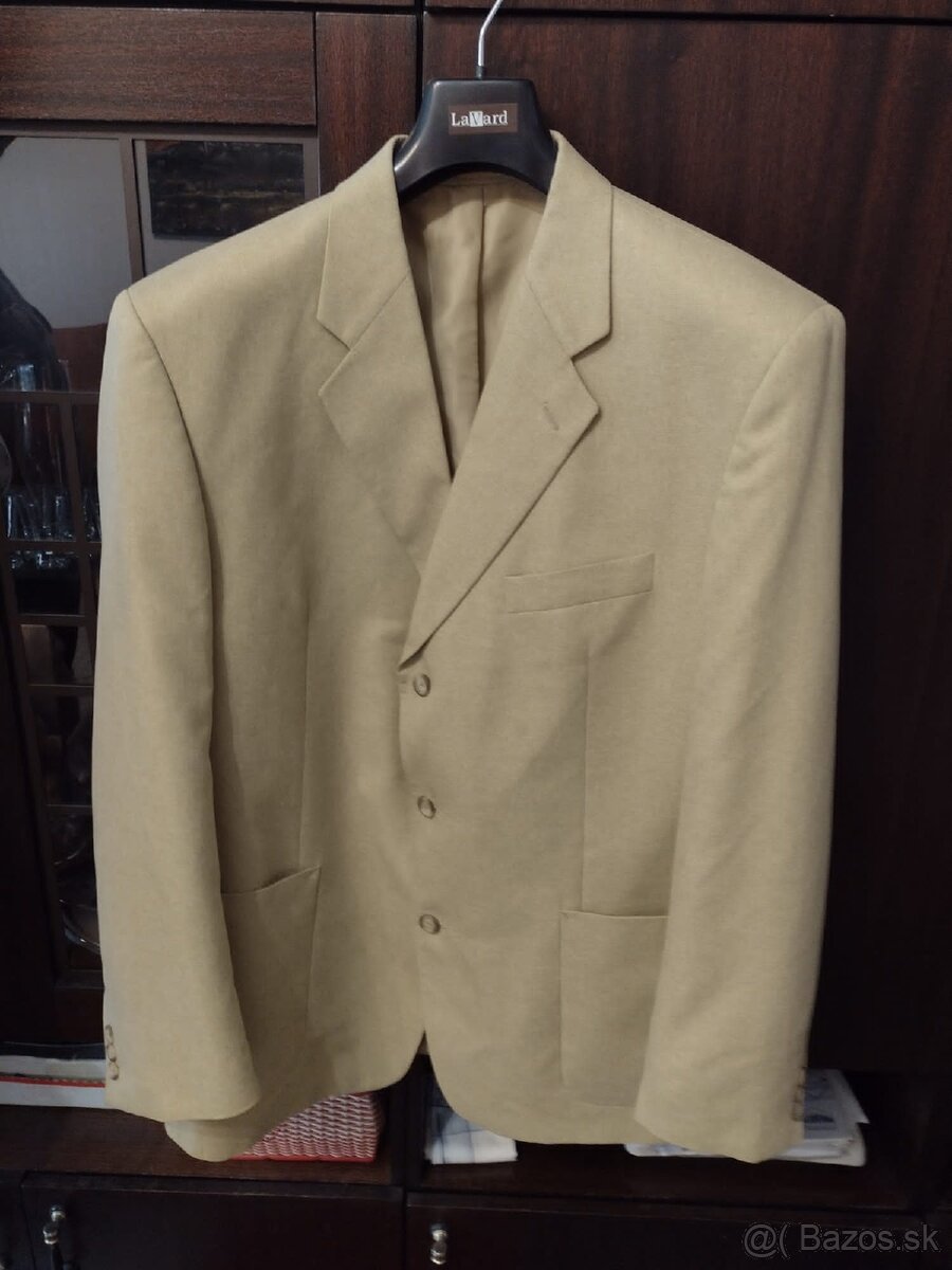 Pánske sako 54 - [5.2. 2026]Pánske sako väčší rozmer. Šírka 82 cm, dĺžka 62 cm. Jemnučký prúžok . ZN: H-DAMIANO alebo skratka H§D. Je to český výrobok. Vrecká majú aj klopy, na fotke sú schované vo vnútri, ak treba doplním foto.