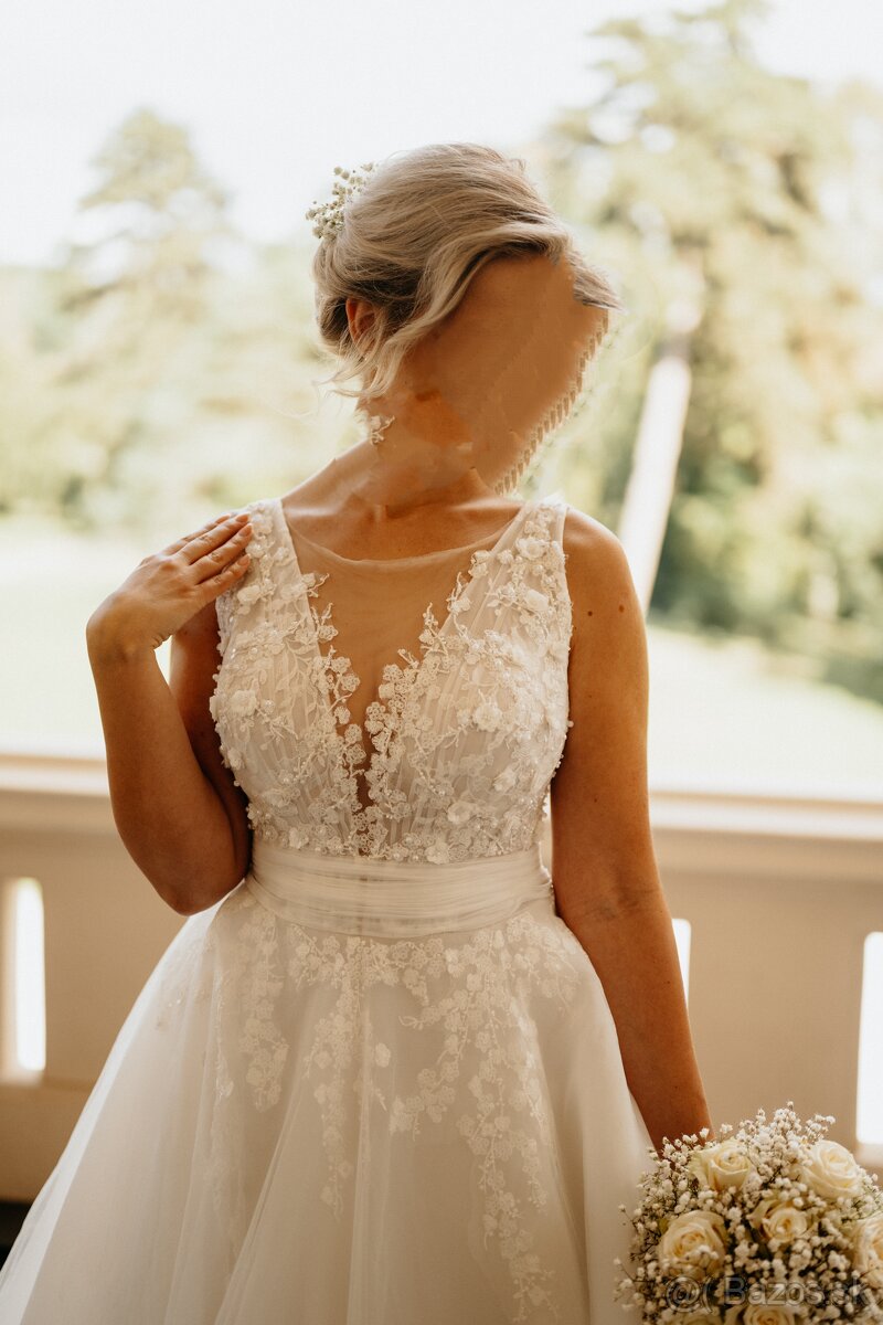 Ahojte milé nevesty. Rada by som vám chcela ponúknuť na predaj svadobné šaty kúpené vo svadobnom salóne French Boulevard v Košiciach. Šaty ponúkam s vlečkou, ktorú je možné vypnúť. K šatám patrí jemne trblietavý závoj a elegantné týly na pokrytie rúk. Veľkosť 34/36. Veľkosť sa dá prispôsobiť vďaka šnúrovačke na chrbte. Prispôsobené na výšku 165/170cm. Šaty sú vyčistené v profesionálnom salóne. Preferujeme osobný odber v KE z dôvodu vyskúšania. Pri rýchlom jednaní dohoda na cene možná.