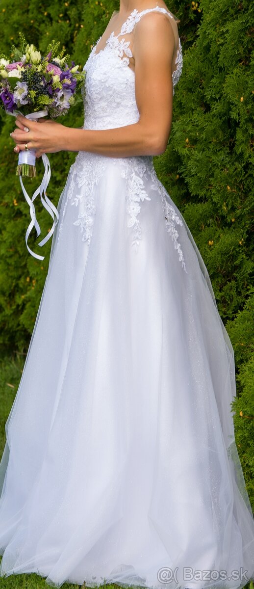 Svadobné šaty 36-38,Sveľ.S-M - [7.2. 2026]Ponúkam na predaj krásne svadobné šaty veľ 36-38.Dlžka šiat je 158 cm od ramien po spodok sukne.