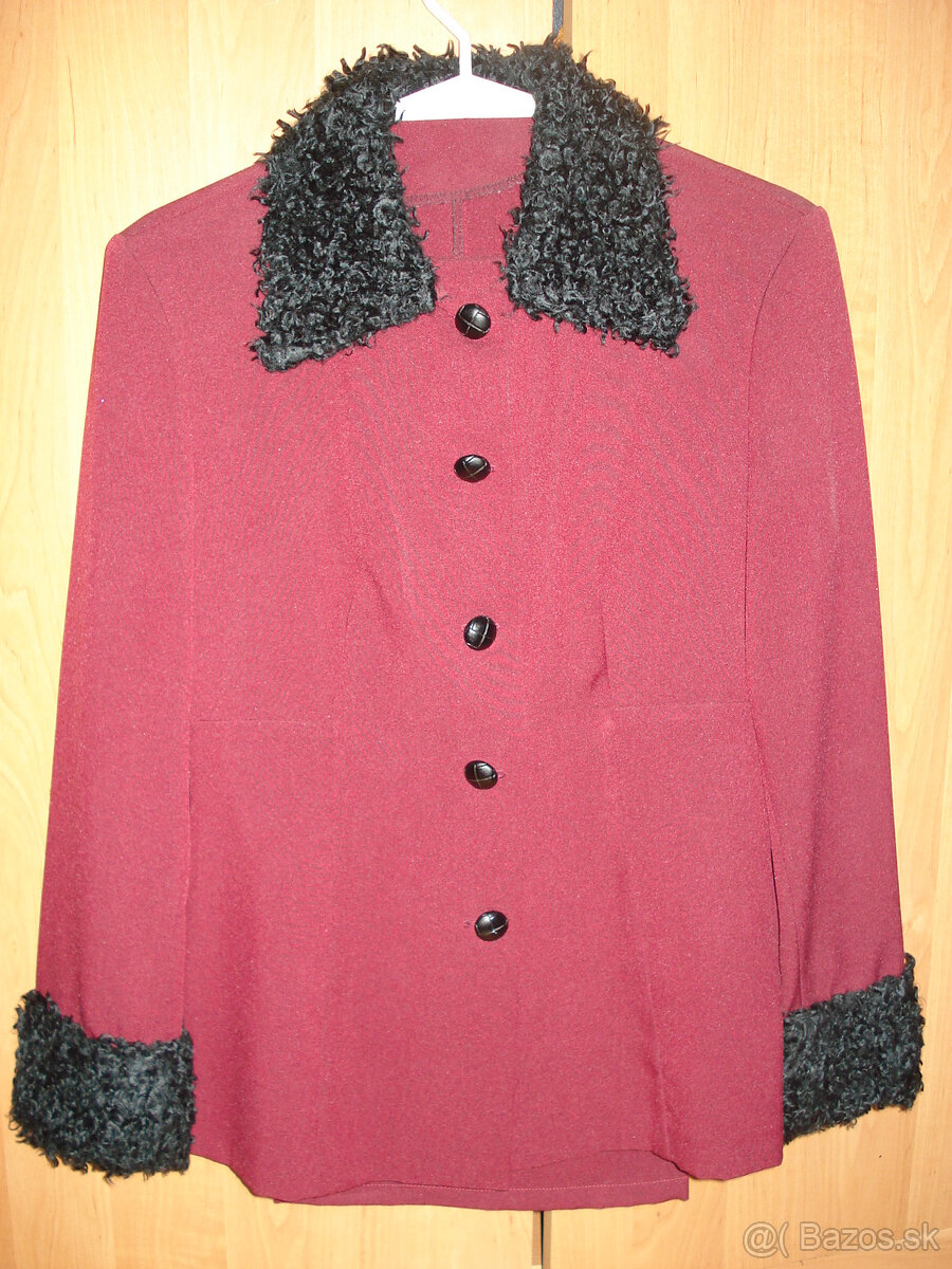 Ponúkam bordové sako ako je na obrázku. Sako má dĺžku 66 cm, plecia 42 cm, cez prsia dookola je 92 cm a pás dookola je 80 cm. Dĺžka rukáva je 58 cm.Bližšie info meilom alebo na tel. čísle. Na dobierku neposielam.