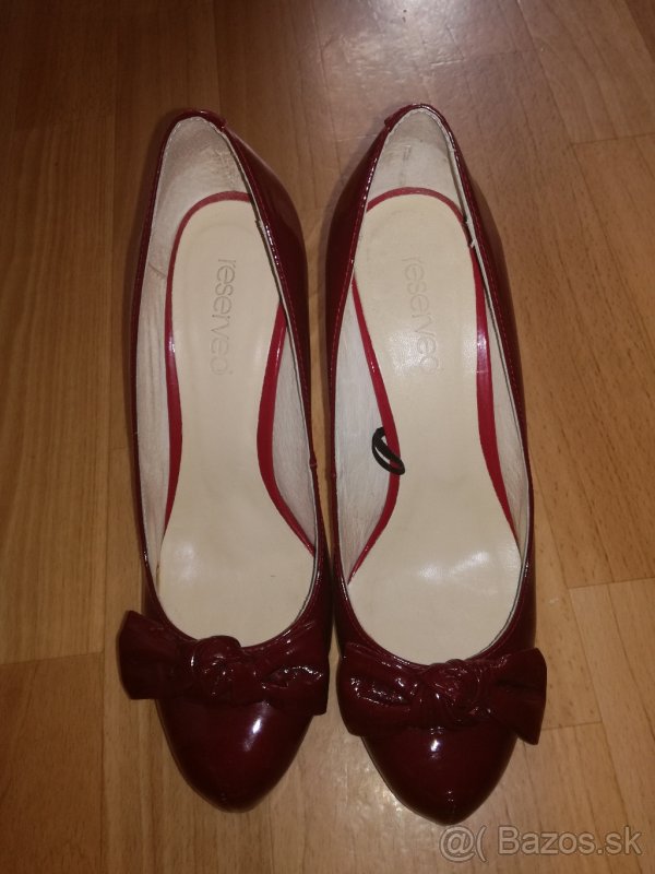 Bordové lodičky s mašľou na päte č. 37 - [22.1. 2026]Veľkosť je uvedená 38, no sú menšie, sedia na 37. Bordová farba. Nenosené, vyskúšané len po byte. Zospodu majú ešte nalepenú fóliu. Krásne vyzerajú obuté, mašľa na päte je dokonalá. Cena 16€ + poštovné. Na dobierku pošlem len po úhrade poštovného vopred.