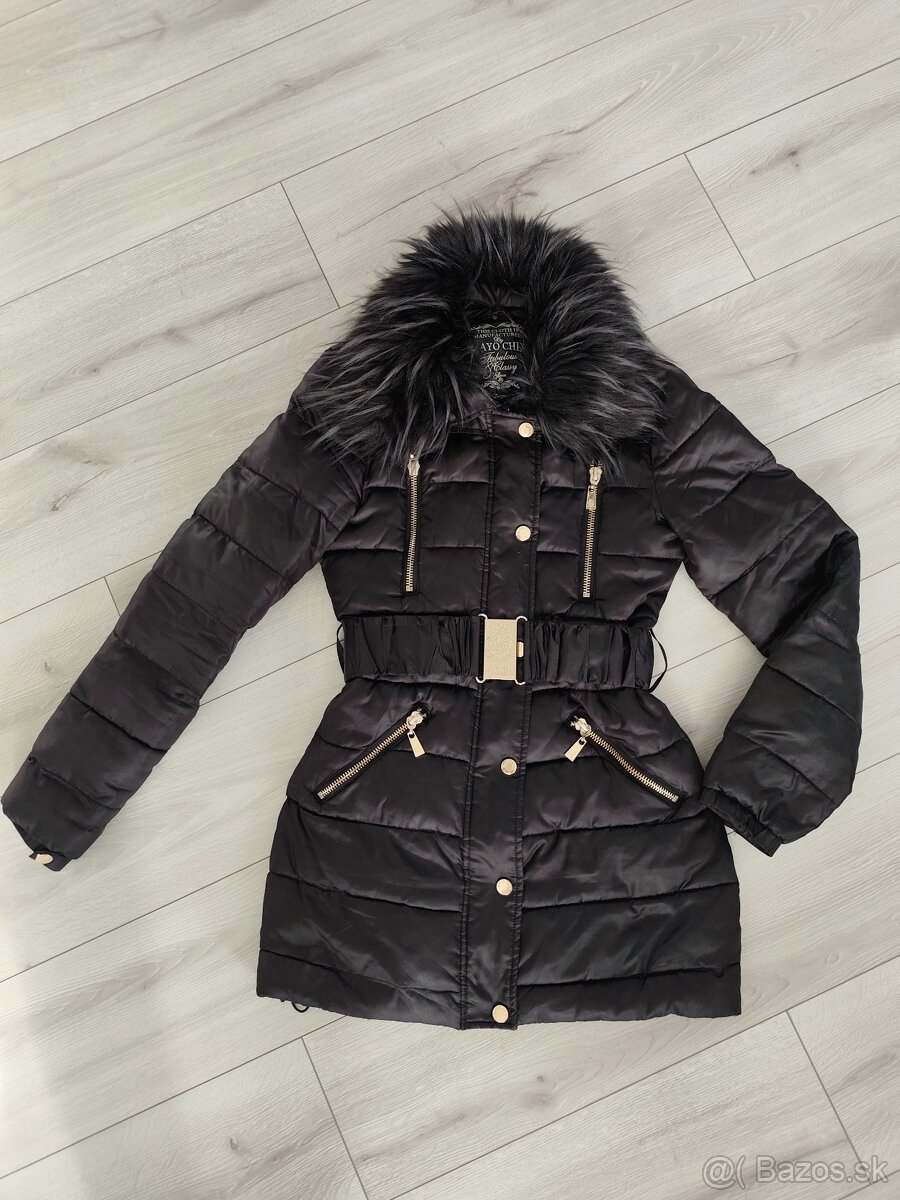 Krasna cierna leskla bunda so zlatymi prvkami,vel.pisana L ale sedi na M,sirka v prsiach 48cm x 2.Na dobierku neposielam