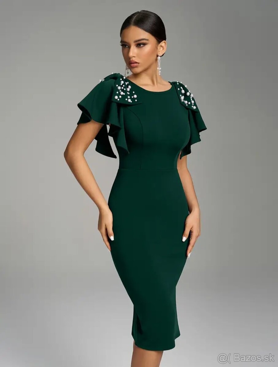 Predam tmavozelene elegantne saty s perlickami. Farba presne ako na prvom obrazku. Vyprate vyskusane. Velk. M