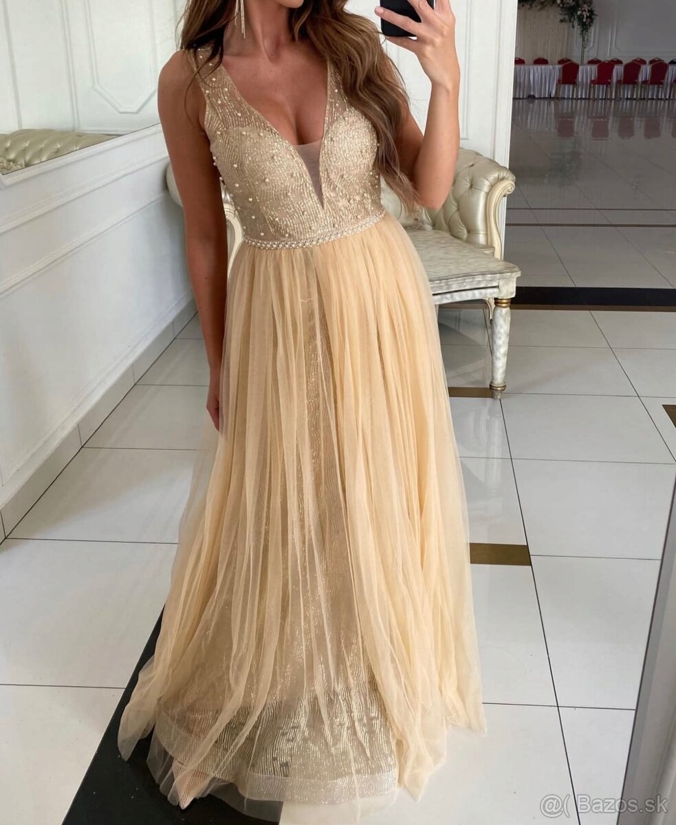 na tom sú 2 vrstvy zlatého matného tylu, takže šaty nevyze ...
