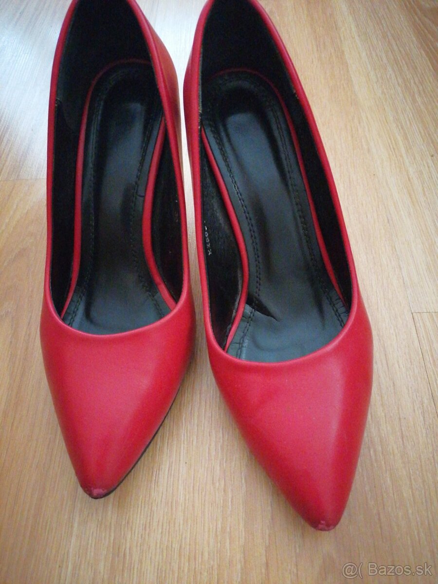 Predám červené lodičky, veľkosť 39, vnútorná dĺžka 26cm, výška podpätku 8,5 cm