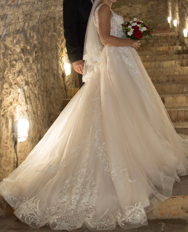 Predám svadobné saty vycistene v cistiarni. Sedia na veľkosť 36/38, zadarmo môžem v príprave zaujmu dodať kruh na saty a nejake doplnky