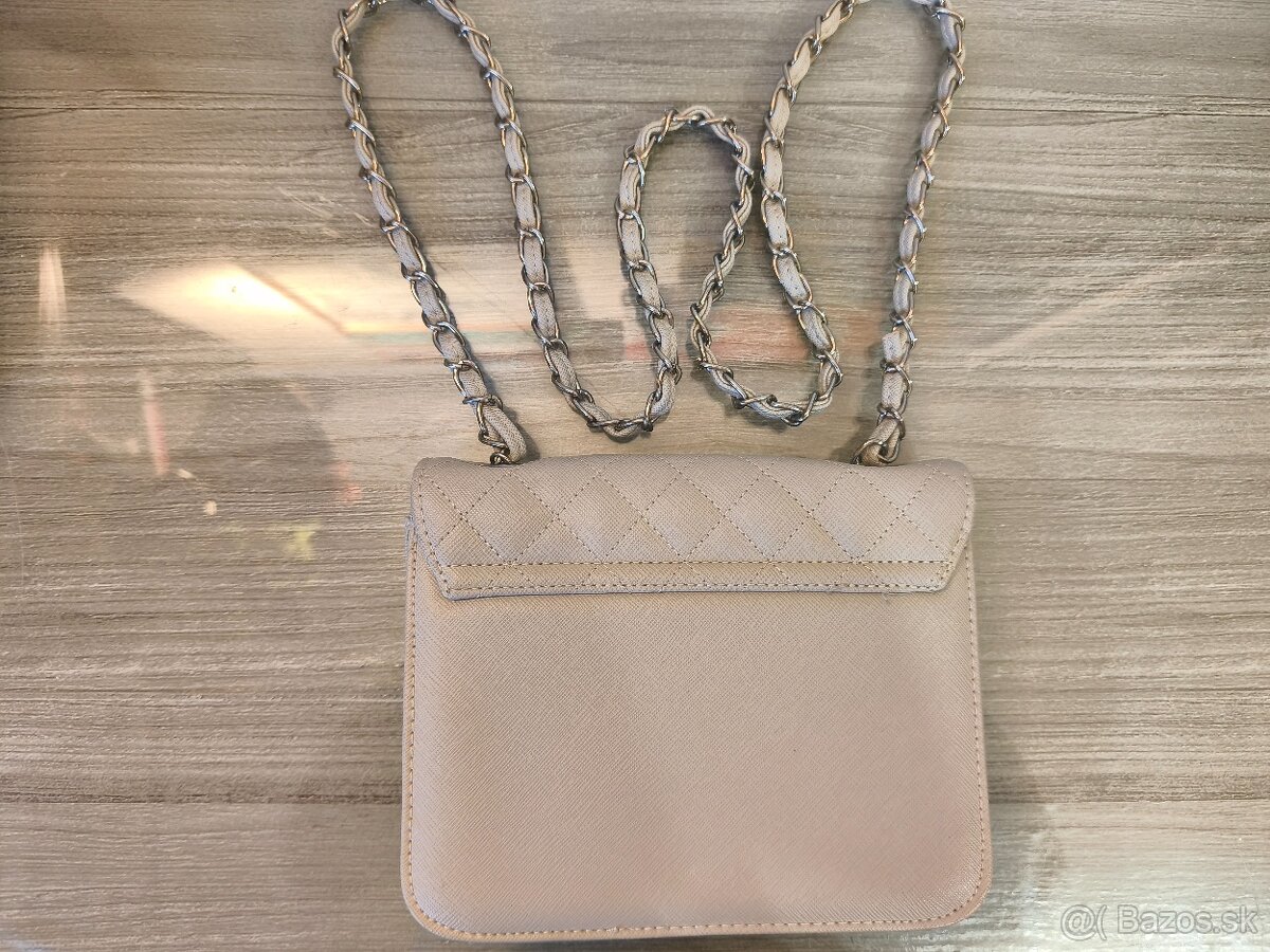 Dámska nová béžová kabelka so zlatými elementmi (Takko) - [8.2. 2026]Dámska kabelka cez rameno béžovej/telovej farby so zlatými elementmi v tvare ľadvinky značky Takko.