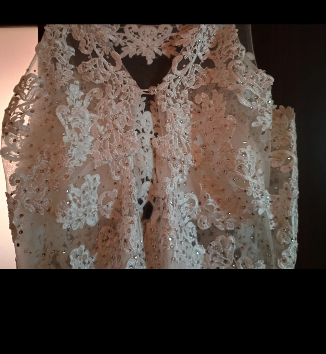 Oblečené raz počas obradu.Som prvá majiteľka.Šaty sú ako nové,veľkosť XL. Poštou posielam len po prevode na účet.