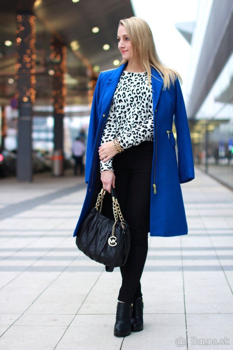 Predám nádherný vlneny kabát farba kráľovská modra ako na foto - velkost sedi 38 možno užšia 40 - použitý max 3x je mi široký - ozdobne zipsy - dve bočné vrecka - je ozaj krásny