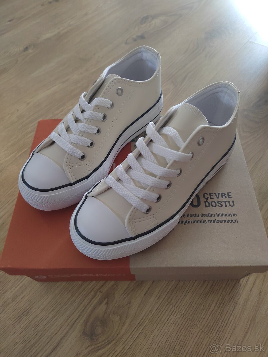 Predám úplne nové nenosené tenisky. Bohužiaľ mi nesadla veľkosť. Píšu 37 ale vhodné su pre veľkosť 36. Vnútorná dĺžka stielky je 23cm. Nie sú platnene ale kozene.
