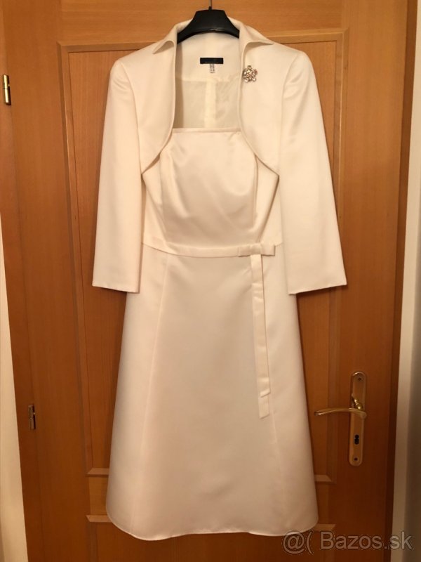 PREDAM BIELE SPOLOCENSKE SATY A KABATIK, zn. MARIPOSA, vel 38 nemecka, vid foto, saty su vo vybornom stave, brosna na kabatiku ako bonus