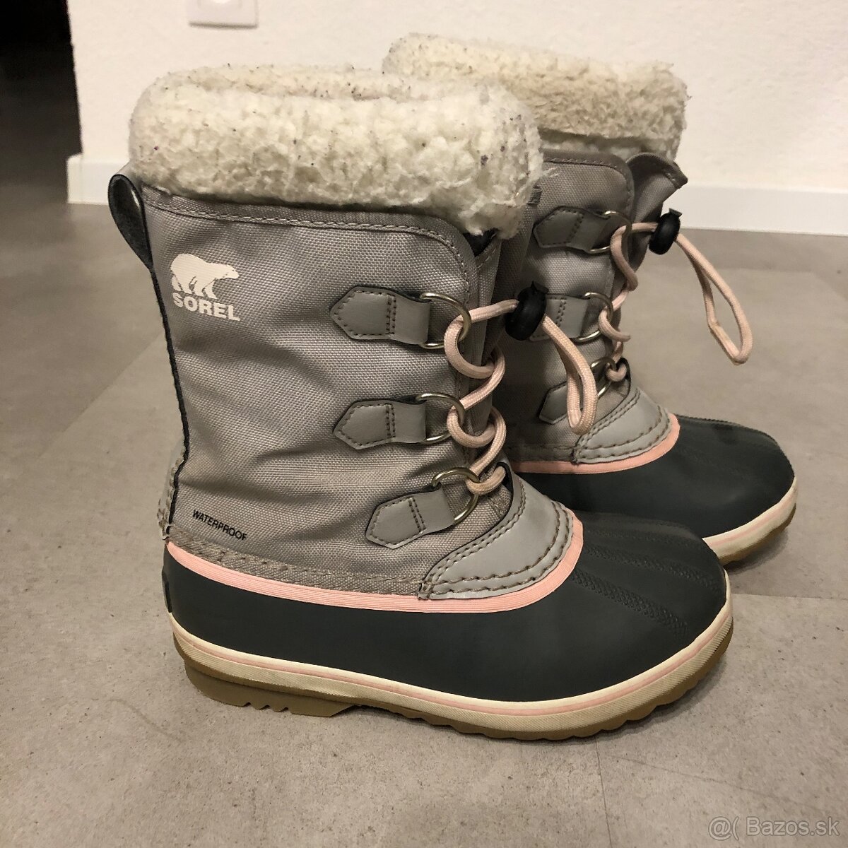 Perfektny stav, SOREL detske cizmy, vodeodolne, spodna cast guma, vyberatelna a pratelna vnutorna vlozka z vlny. Velkost 32. Cena zahrna aj postovne.