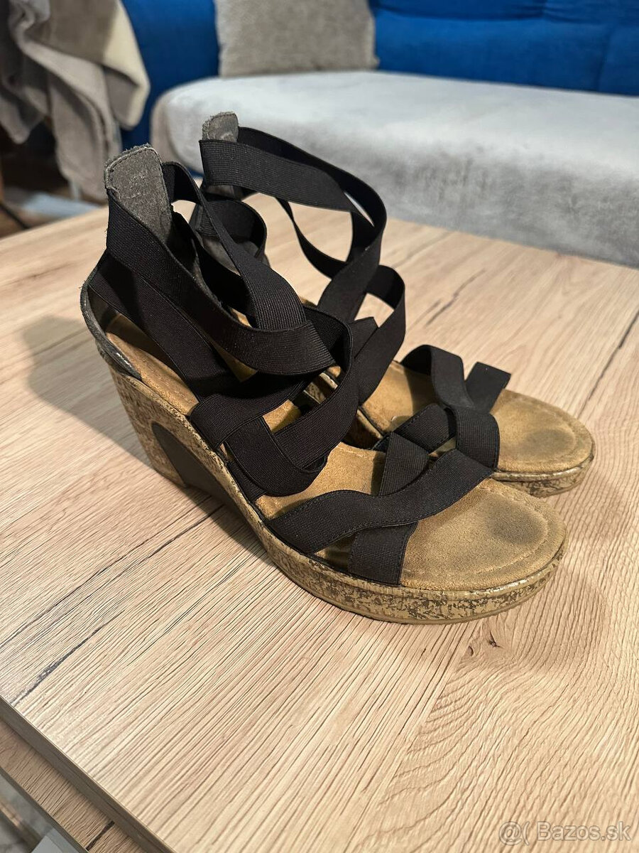 Letné topánky - [20.1. 2026]Predám čierne letné dámske topánky na klinovom podpätku. Veľkosť 39. Výška opätku: 8,5 cm.