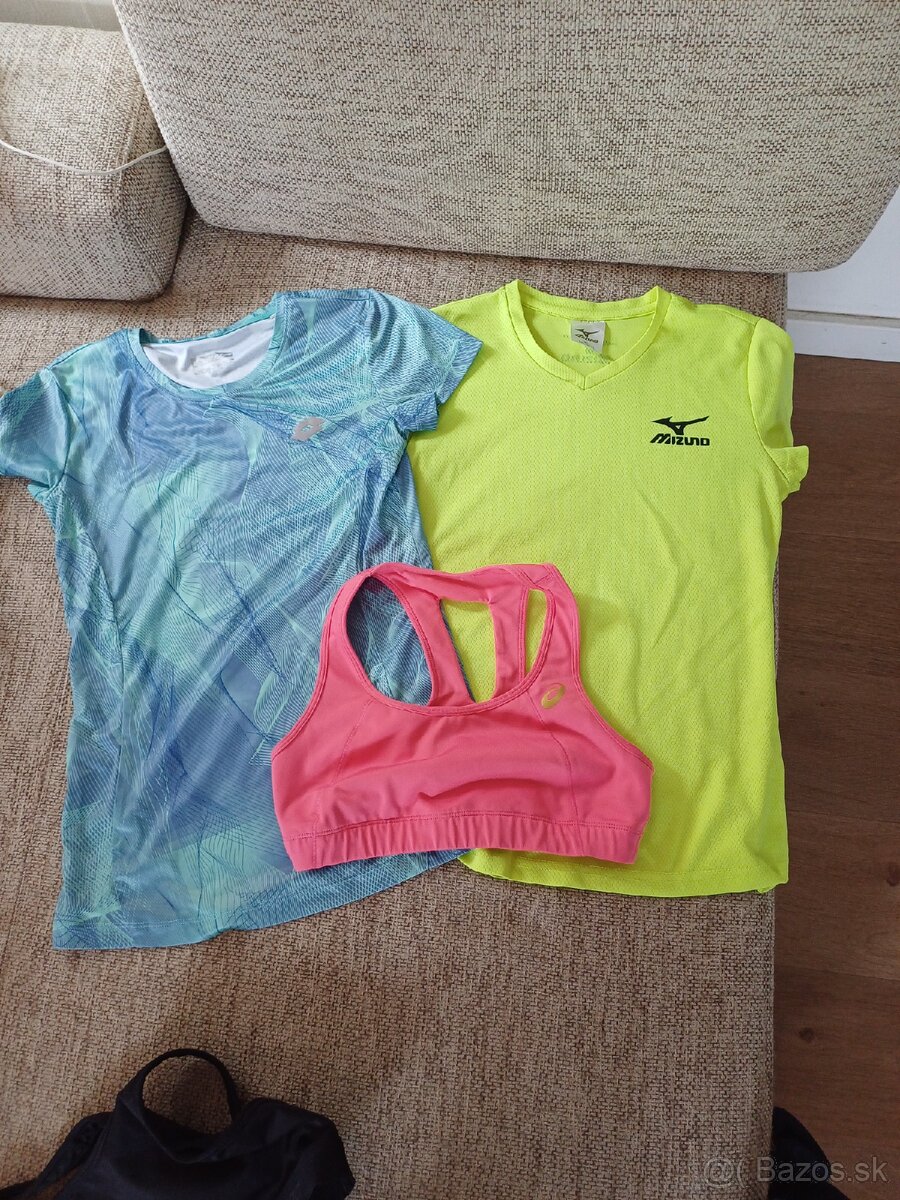 Mizuno nove, lotto par krat oblecene, sportova podprsenka asics XS-S. Vsetko spolu cena 15 eur.