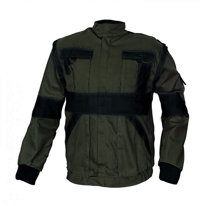 2 predné vrecká, 2 náprsné zdvojené vrecká a 1 malé vrecko na ľavom rukáve.