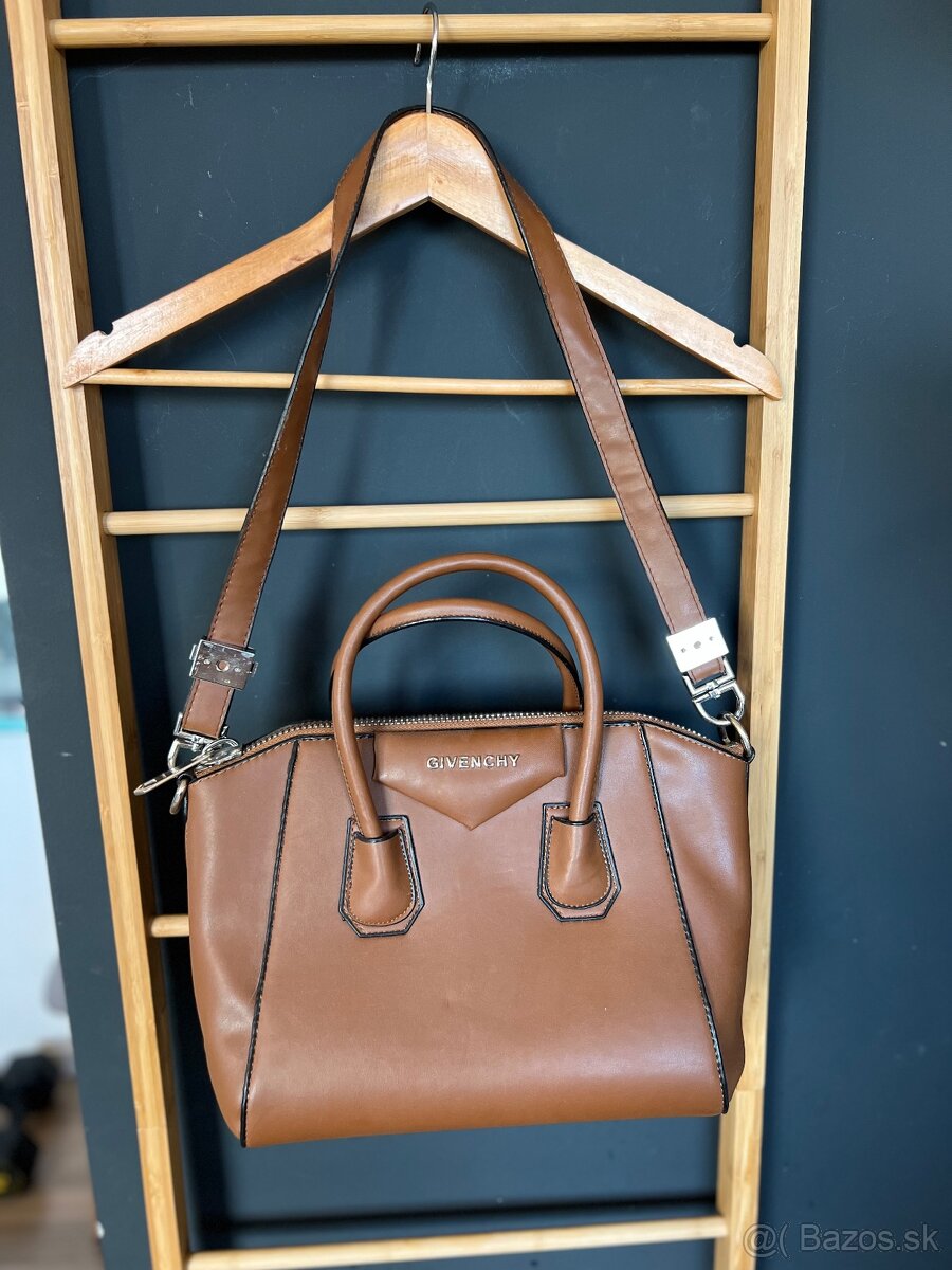 Hnedá kabelka cez plece