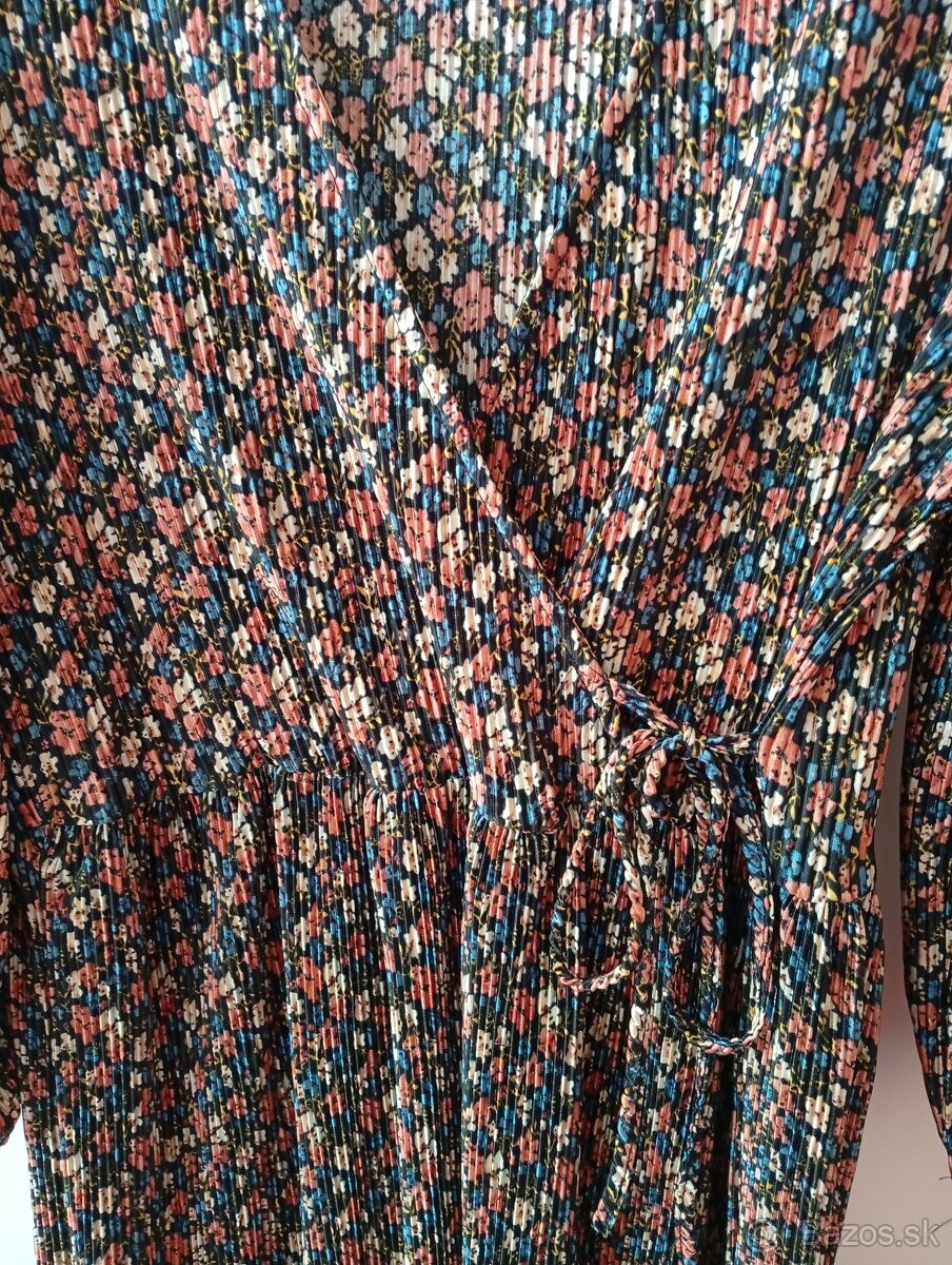 1.šaty nové , nenosené, kvalitné,majú vzhľad akoby boli celé jemne riasené, príjemný materiál, ľahké, vzdušné, čisté bez fľakov, veľkosť L, dĺžka 96 cm, ramená 39 cm, v oblasti podpazušia 47 cm x 2, rukávy 52 cm, v oblasti pása 40 cm x 2.