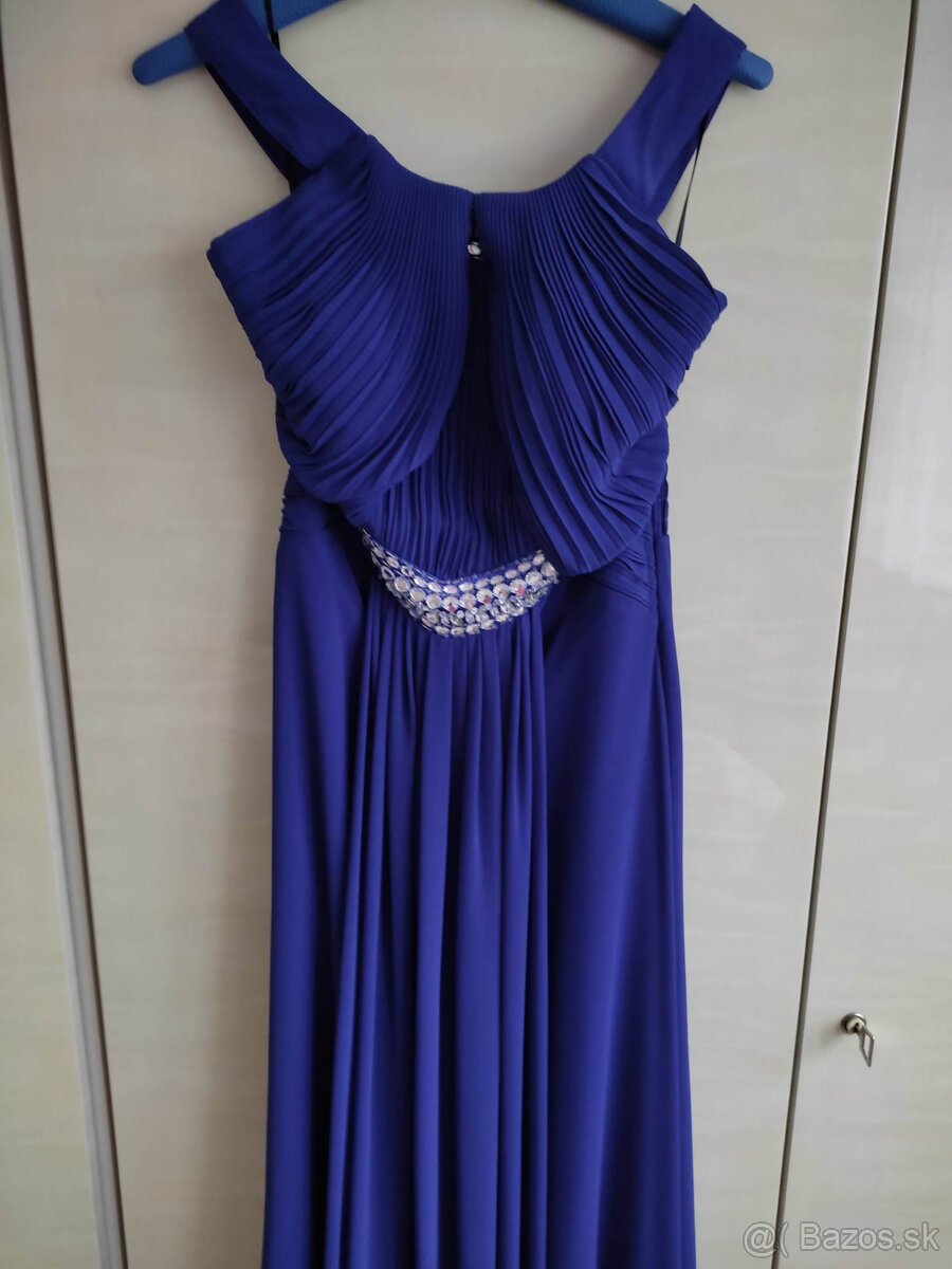 Predám krásne šifónové šaty, podšité saténovou spodničkou v kráľovský modrej farbe. Čislo 38, M- Vzadu je gumička, prispôsobia sa.