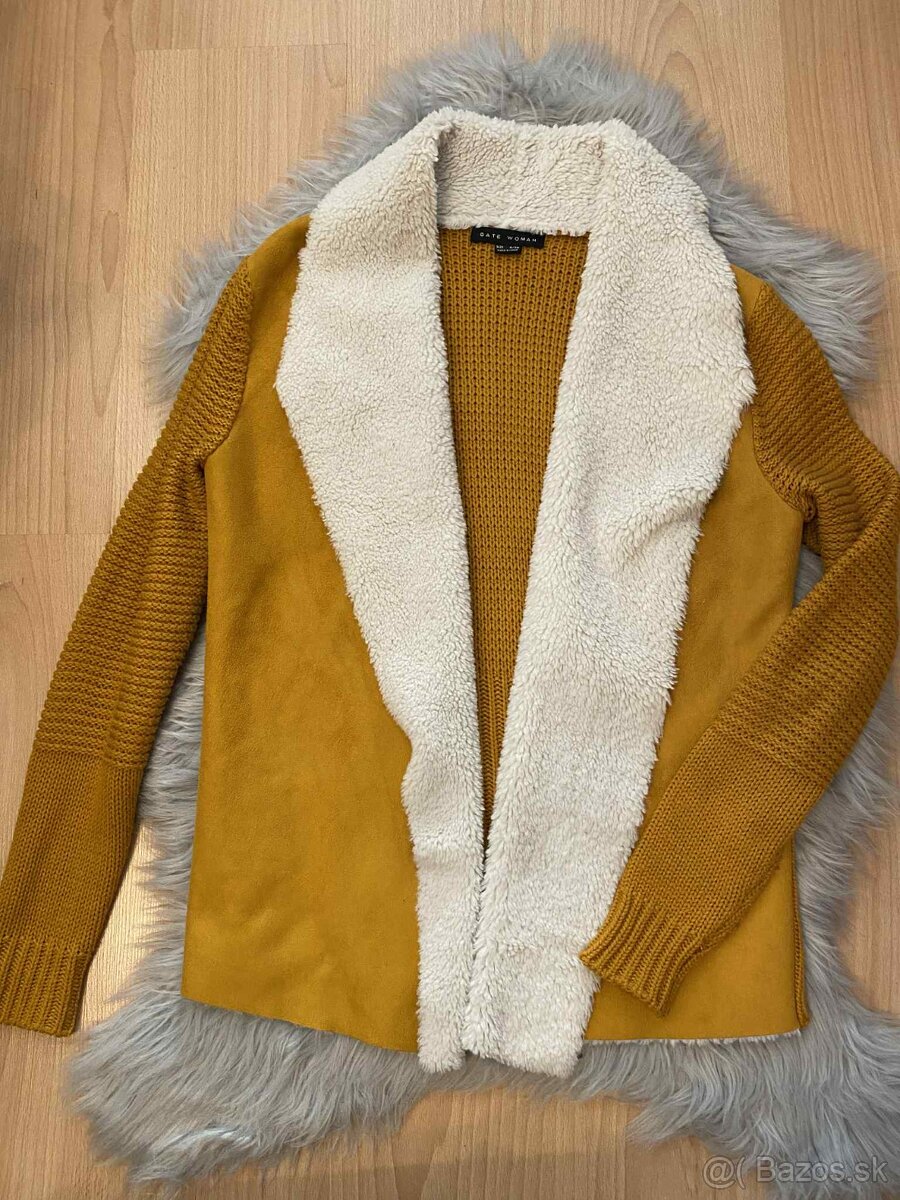 Horčicový kardigán - zn. Gate, veľkostne sadne na XS, S, aj S/M, cena 8€.
