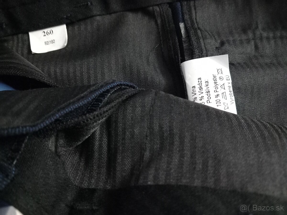 Predám pánsky (podšitý) oblek vhodný na stužkovú slávnosť, ples či svadbu. Farba: tmavo-modrá s jemným malým vzorom (kocka). Veľkosť saka: 44/182 a veľkosť nohavíc: 82/182 (č.260). Oblek nebol použitý ani raz - kúpený vopred na oslavu a bol už malý. Cena je za komplet - sako a nohavice.